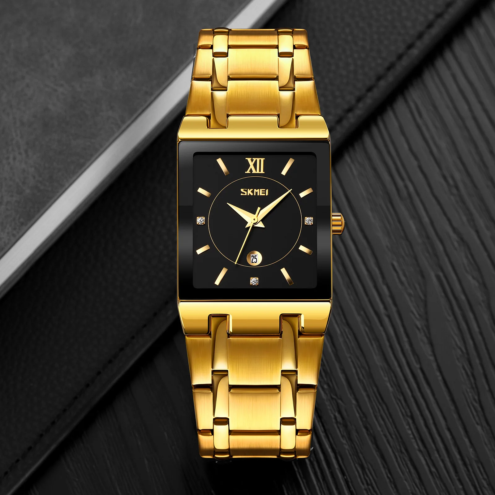SKMEI 9263 High-quality Stainless Steel Fashion Business Square Dial Glass Crystal Water Resistant Men's Quartz Watch